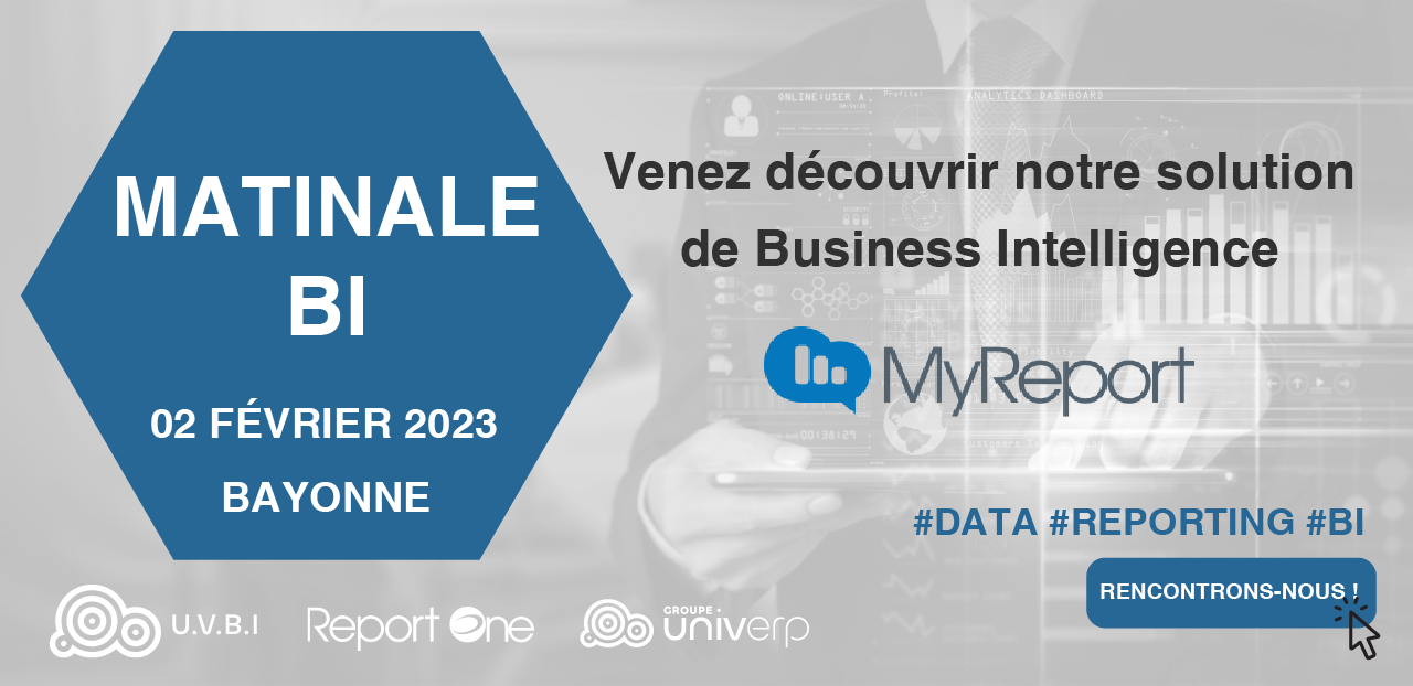 Organisée par notre filiale U.V.B.I. et en présence de l'éditeur Report One, cette matinale abordera différents sujets autour de la Data et vous présentera l'outil d'aide à la décision MyReport.